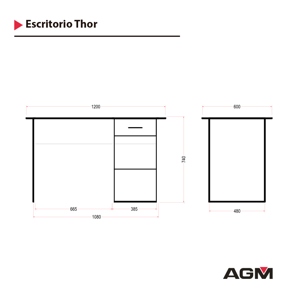 El Escritorio Thor es un mueble ensamblable (RTA) diseñado para optimizar espacios de trabajo con funcionalidad y estilo. Fabricado en melamina de 15 mm en elegante color Dakar, ofrece durabilidad y acabado moderno. Cuenta con un cajón equipado con corredera para un desplazamiento suave, además de un nicho con repisa móvil que permite organizar documentos y accesorios según necesidad. Incluye cerradura para resguardar objetos personales y patines plásticos que protegen el suelo y facilitan la movilidad del escritorio. Sus dimensiones son 120 cm de ancho, 60 cm de profundidad y 75 cm de alto, adaptándose a distintos ambientes laborales o de estudio. Su diseño práctico y resistente garantiza una solución eficiente para quienes buscan un espacio ordenado y funcional.