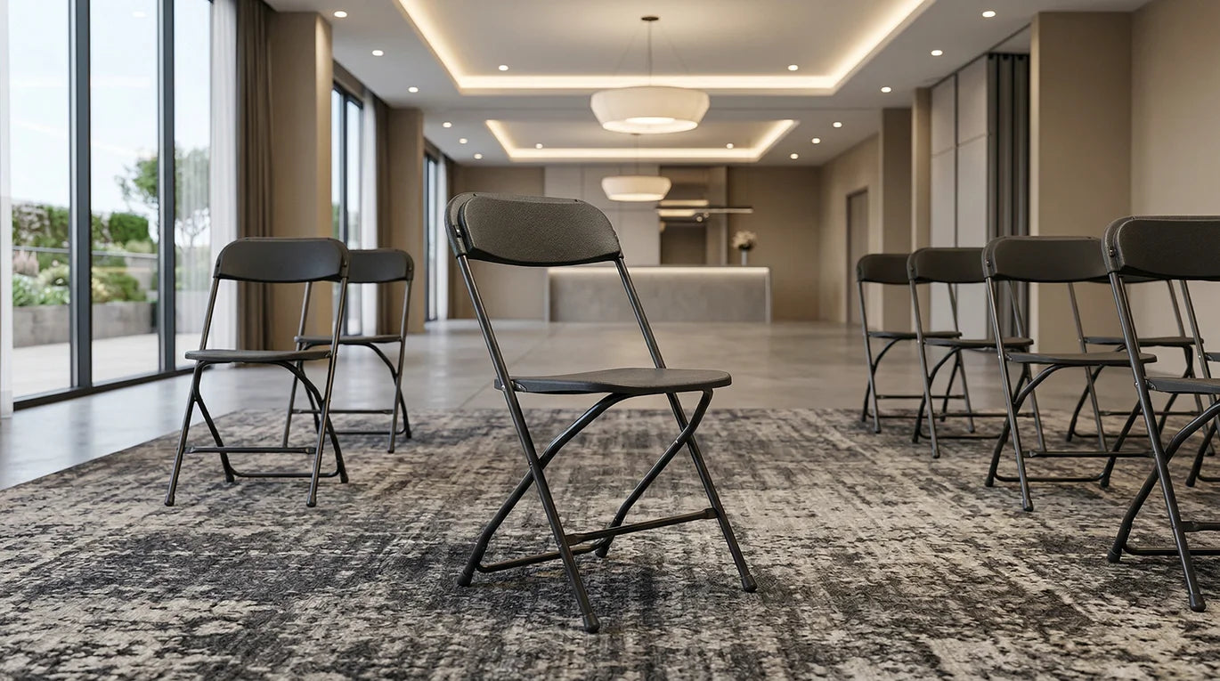 La Silla Plegable Event Negra combina funcionalidad y resistencia, ideal para cualquier ocasión tanto en interior como en exterior. Su estructura metálica de perfiles de 3/4” esmaltada al horno garantiza durabilidad, mientras que el respaldo y asiento de polipropileno negro aportan comodidad y fácil mantenimiento, siendo lavables.